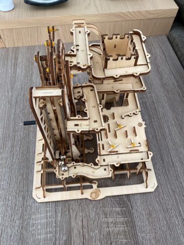 Fun to Play: Once assembly is complete the fun doesn’t stop, just turn the handle and watch the steel marbles roll on the track over and over again.